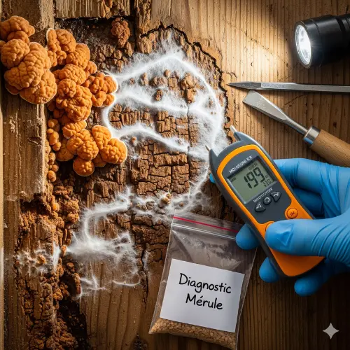 Détecte la présence de ce champignon destructeur du bois, souvent caché dans les zones humides, qui peut fragiliser toute la structure du bâtiment