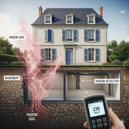 Vérifie le niveau de radon, un gaz radioactif naturel, particulièrement dans les zones à risque. Un diagnostic essentiel pour garantir un air intérieur sain